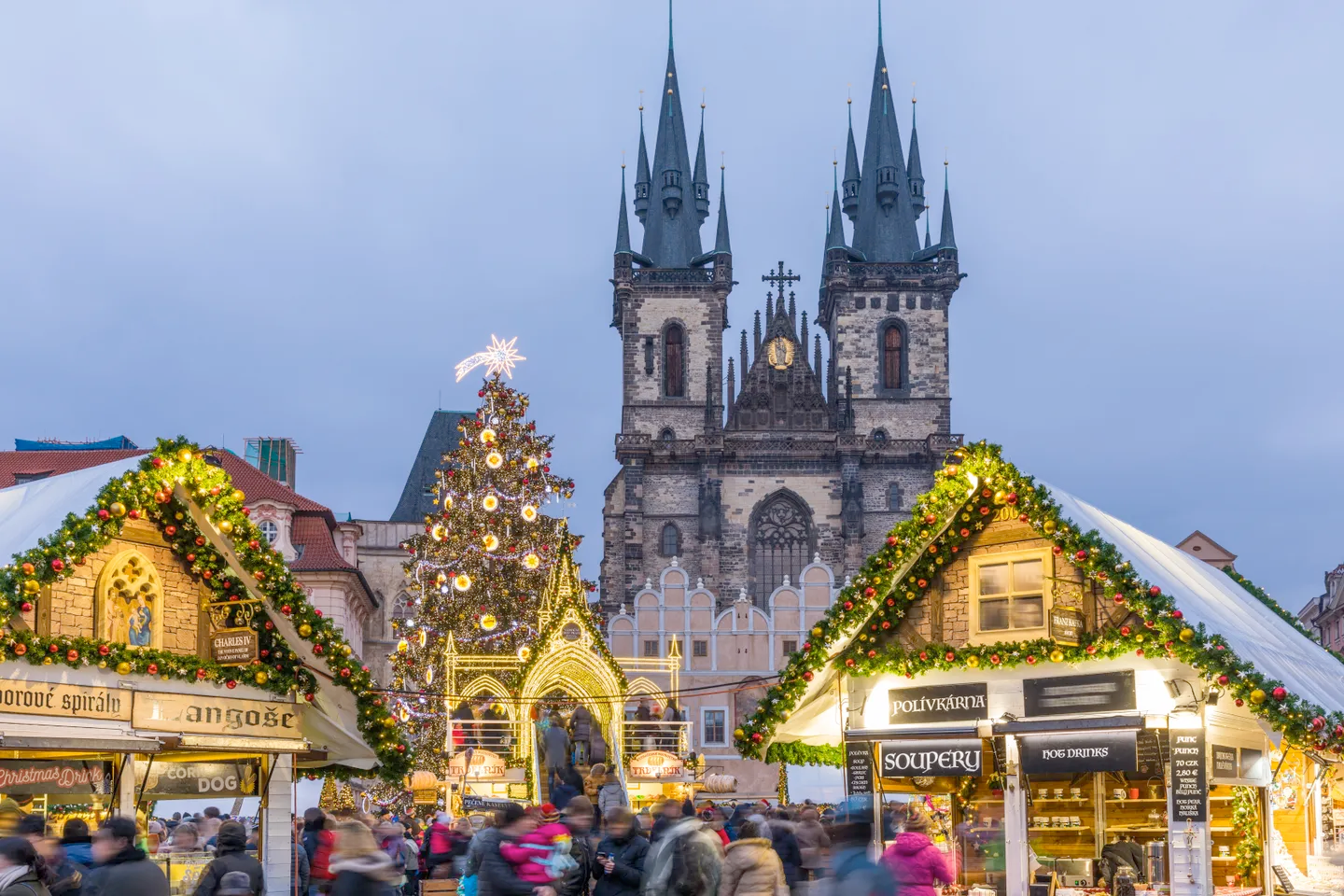 Prague’s Christmas markets are known for their old-world charm and enchanting holiday spirit. The main market is located in Old Town Square, where families can admire the stunning architecture of the Astronomical Clock and the Gothic Church of Our Lady before Týn. The market features festive stalls filled with handmade ornaments, traditional Czech treats like trdelník (a sweet pastry), and cozy winter drinks.